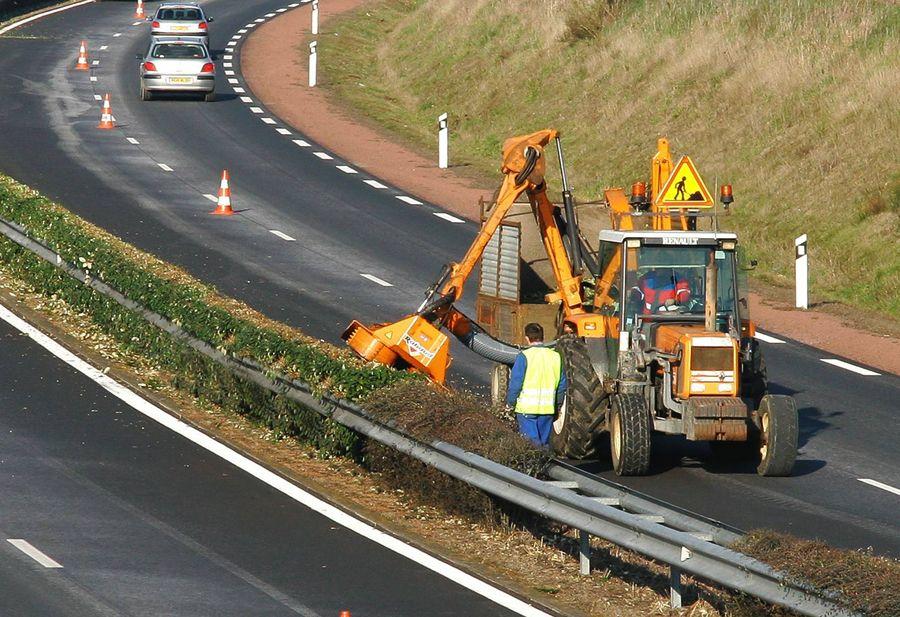 - Un seul opérateur installé en sécurité dans son tracteur, exécute les tâches d’entretien des haies sur terre-plein central.