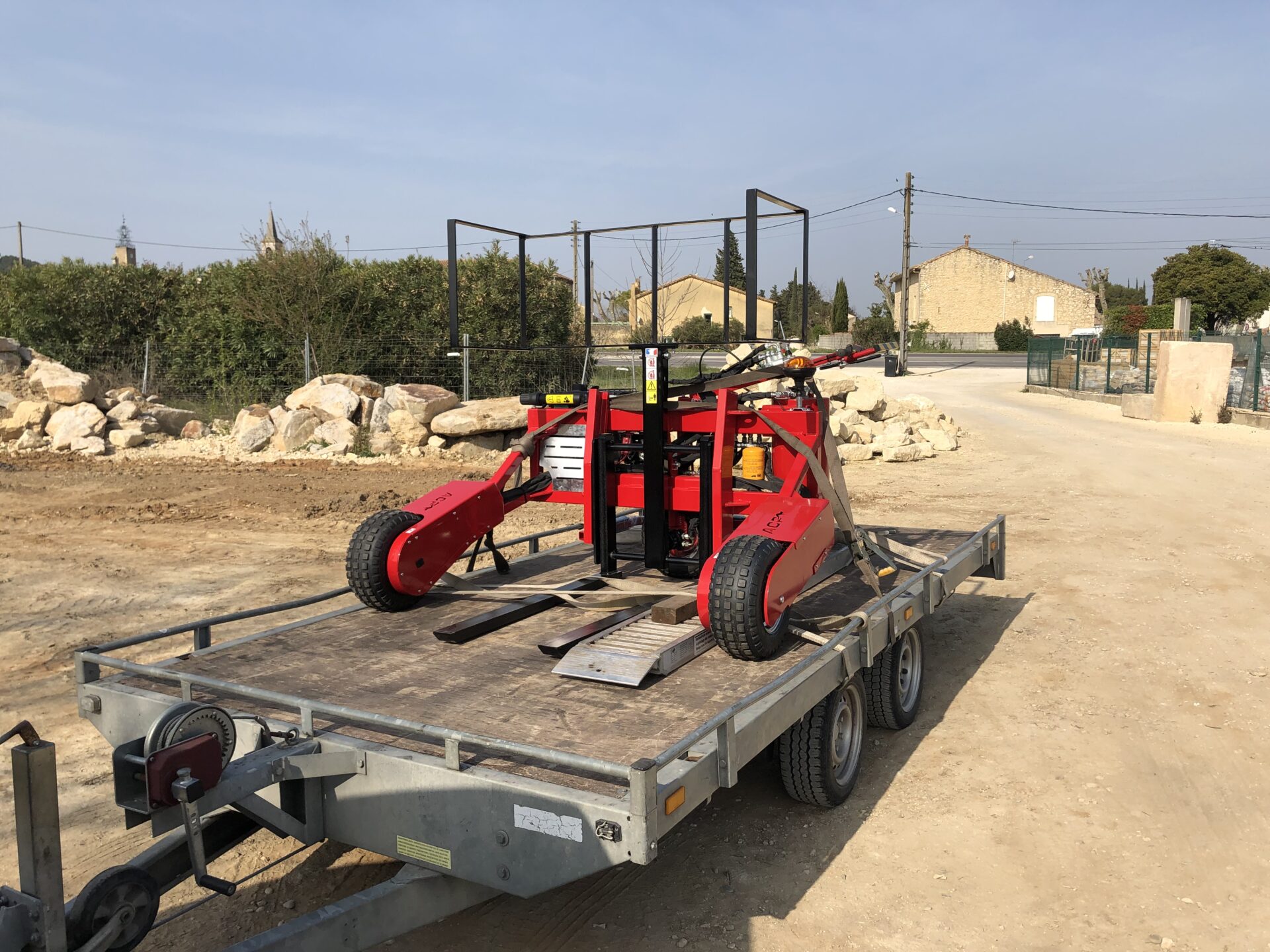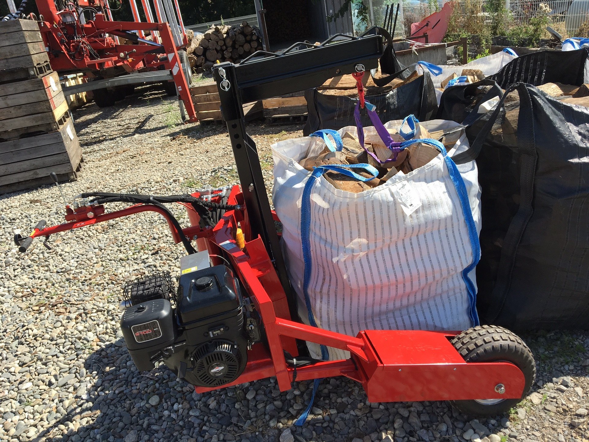 Une  avec potence et fourches relevables est maintenant disponible pour le transport des big-bag.