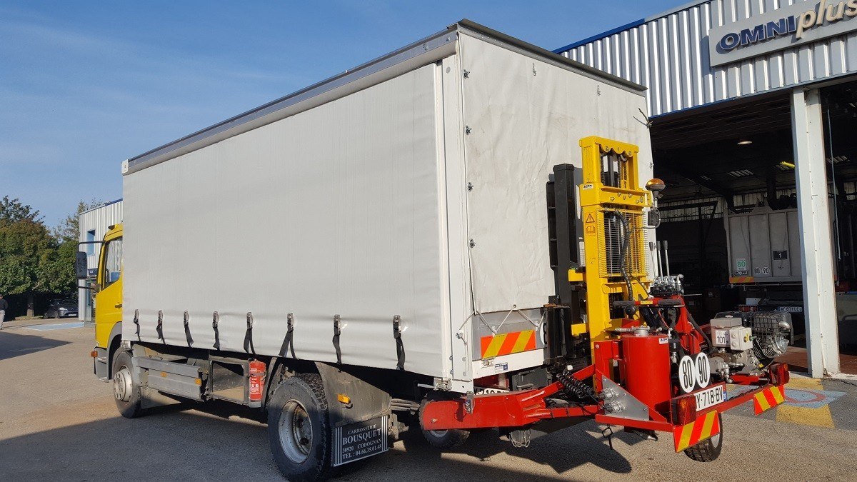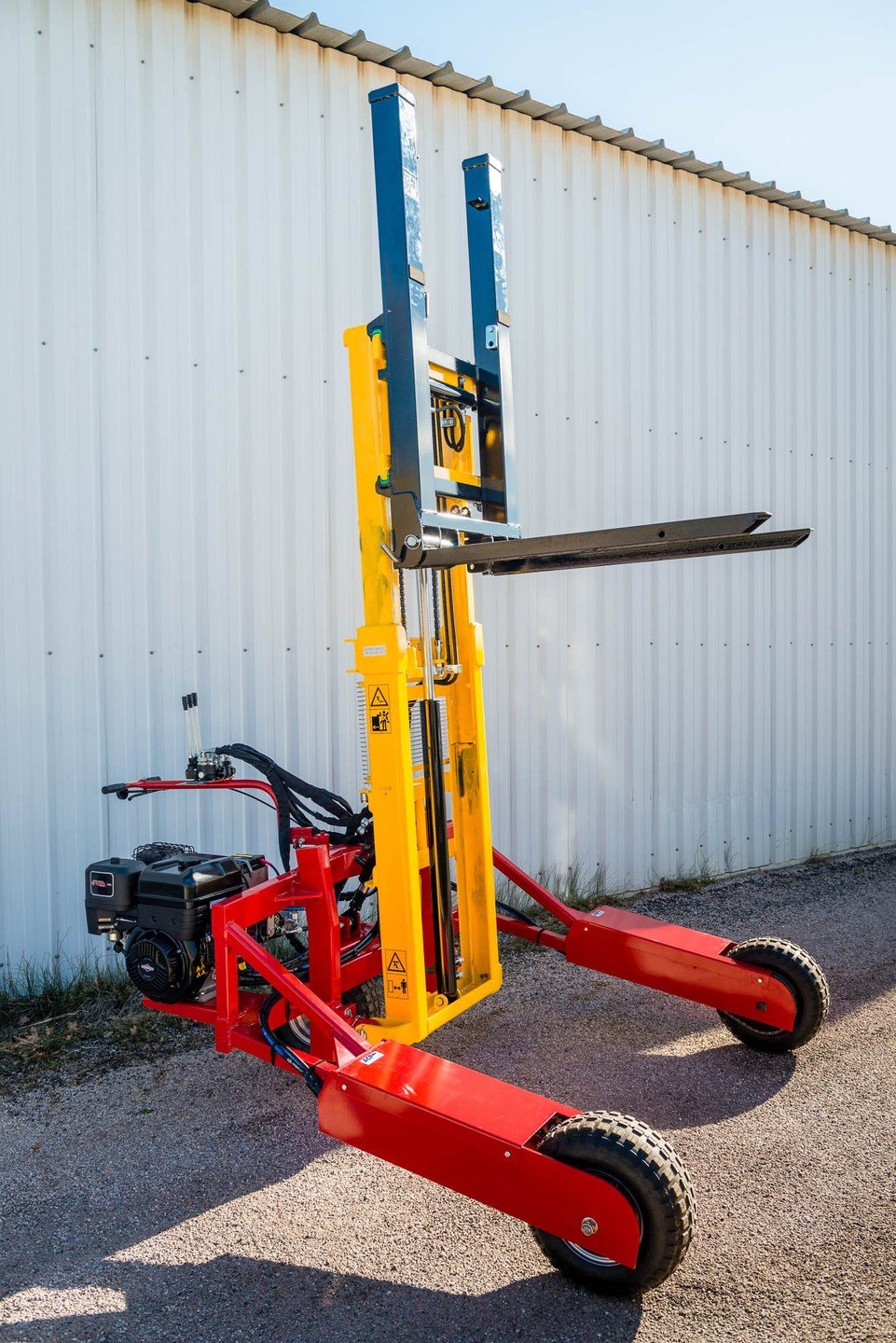 Le transpalette tout terrain gerbeur est en version Junior pour utilisation sur véhicule utilitaire léger, transport sur remorque possible sans permis E.